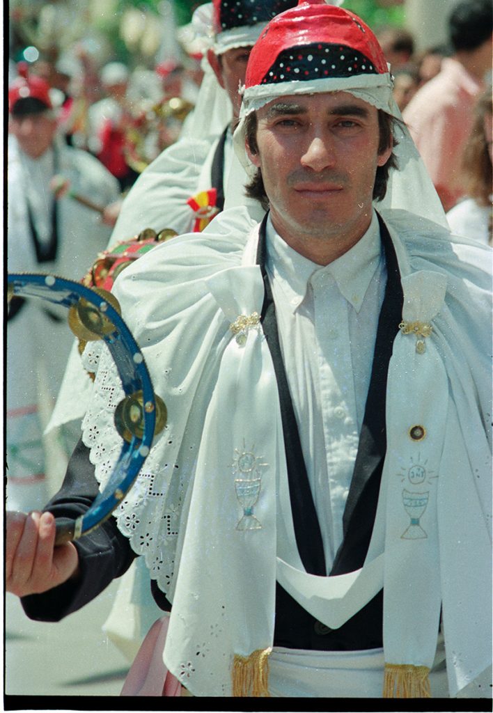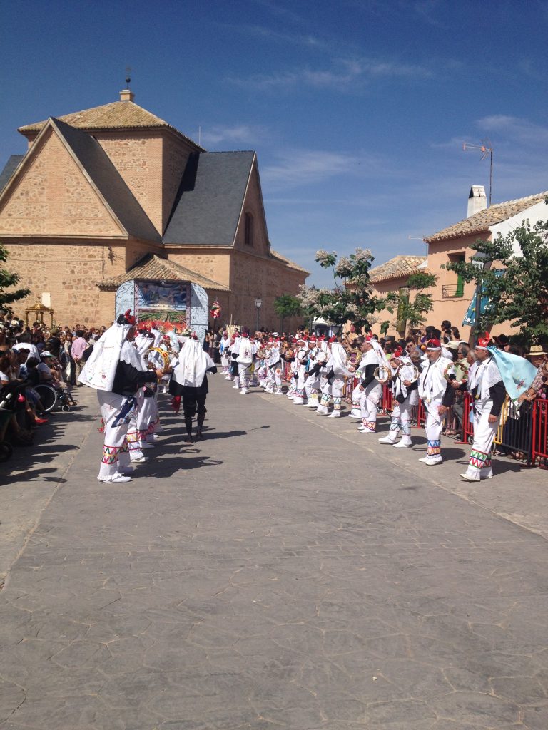 La tarde del domingo de Resurrección, los danzantes, vestidos con el traje ritual a excepción de pantalón blanco, pañuelos y cintas laterales, componen la formación y, tocando su ancestral música, se dirigen a la iglesia parroquial.
